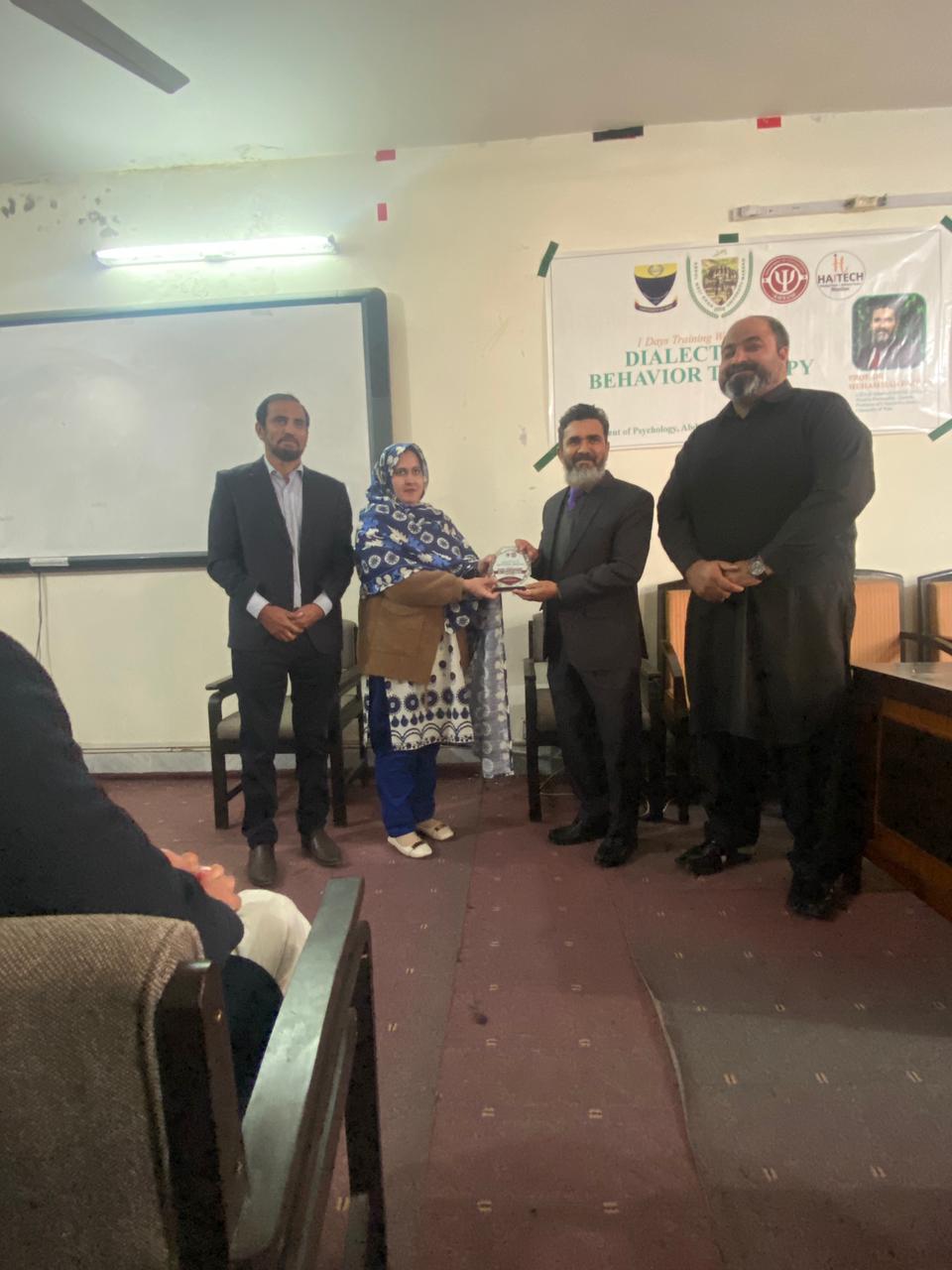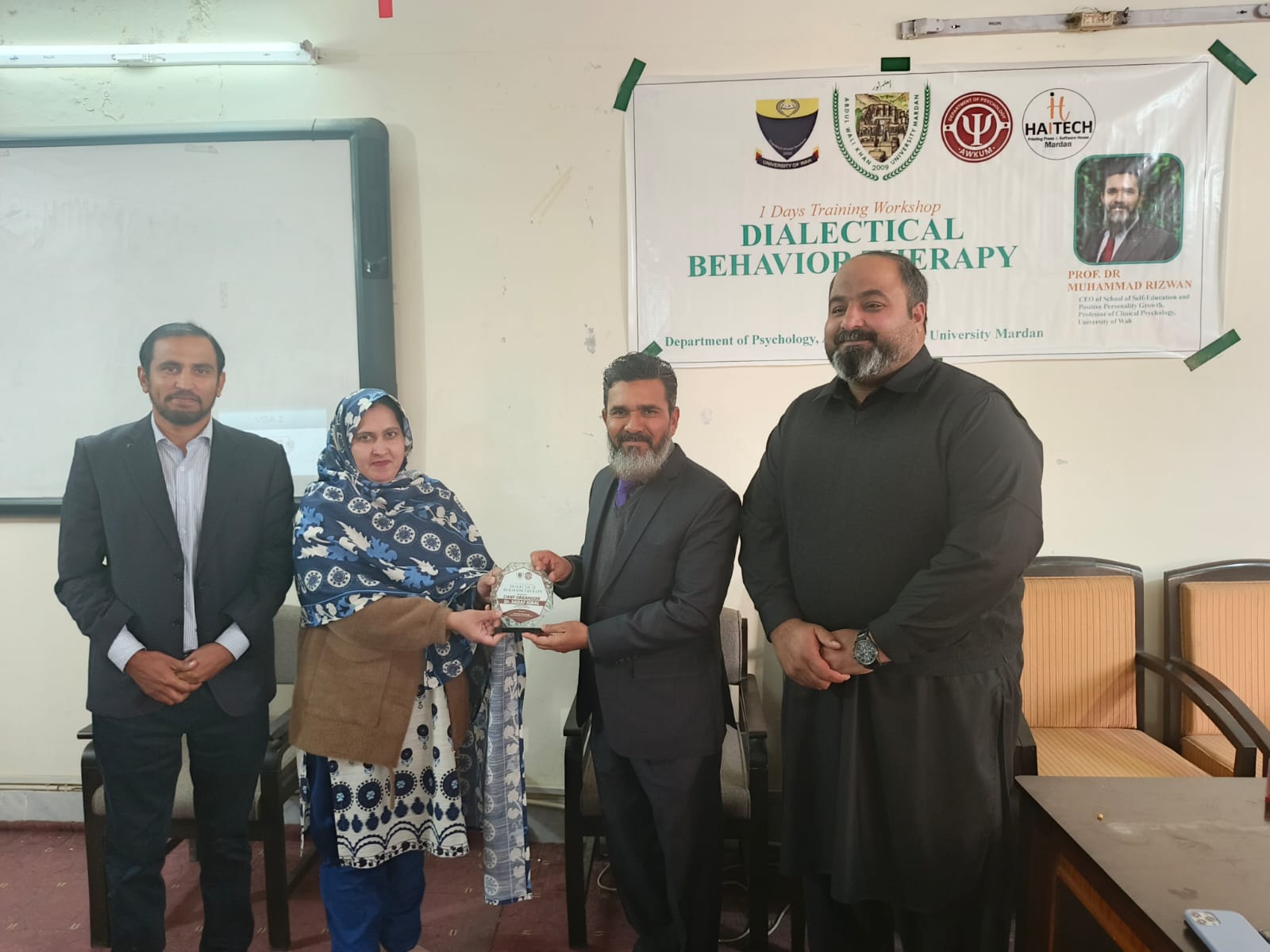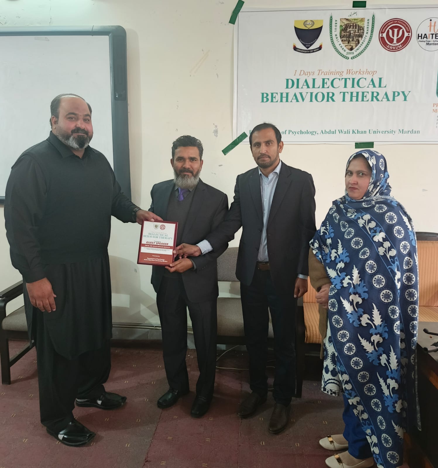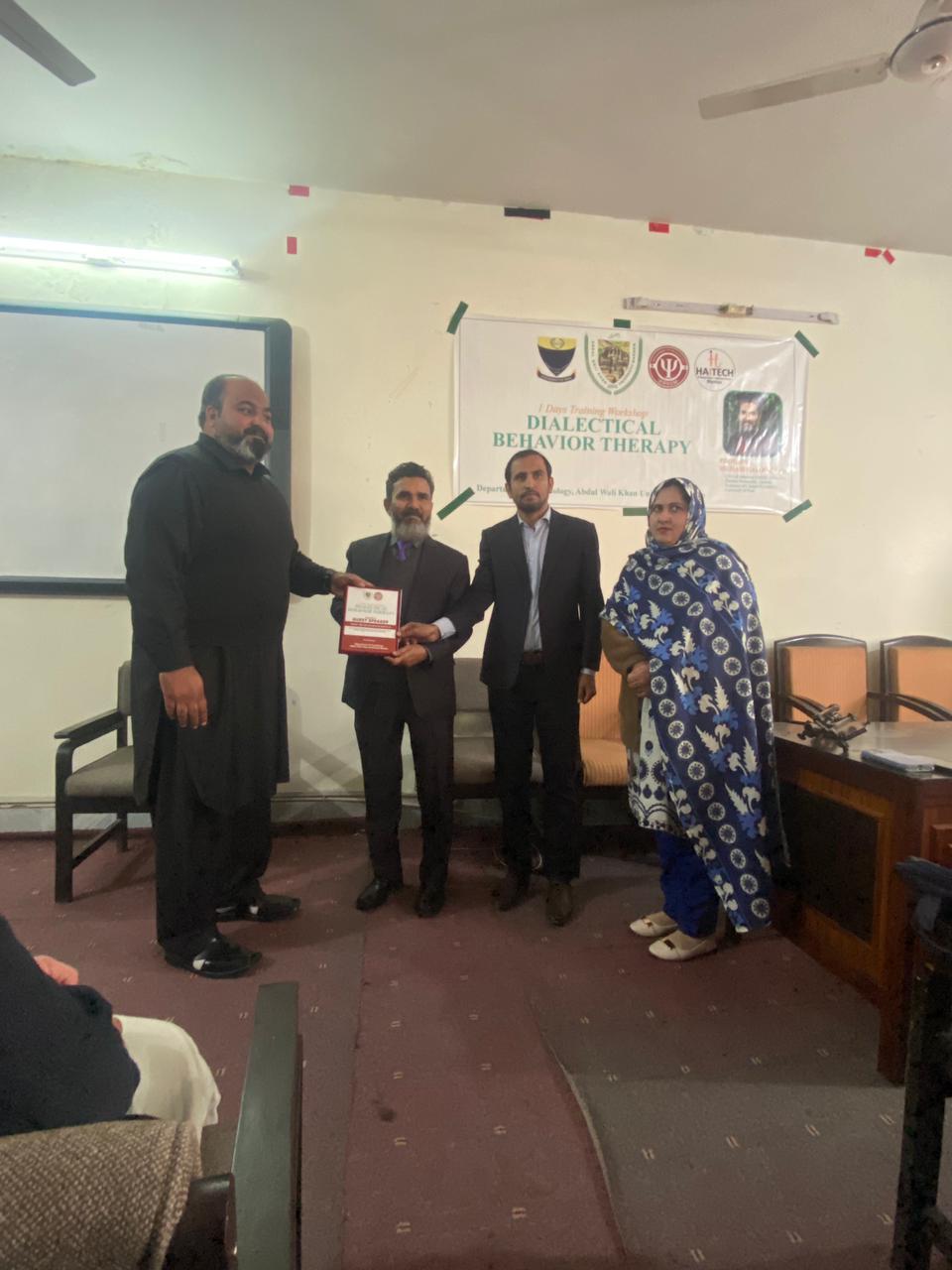 Dr. Muhammad Rizwan, CEO of the School of Self-Education and Positive Personality Growth, is pleased to share that a one-day Dialectical Behavior Therapy (DBT) workshop was successfully conducted at Abdul Wali Khan University, Mardan (AWKUM). The workshop focused on building a clear understanding of DBT and its practical use in mental health settings. Participants were introduced to core DBT concepts and key skill areas, with an emphasis on how DBT-informed approaches can support clients in managing intense emotions, improving coping strategies, and strengthening interpersonal functioning. The session also encouraged discussion and learning through interactive engagement, making the training both practical and relevant for students and professionals. The School extends its appreciation to Abdul Wali Khan University, Mardan, for facilitating the workshop and providing an enabling learning environment. Gratitude is also shared with all participants for their active involvement, interest, and commitment to improving mental health knowledge and practice. This one-day workshop reflects the School’s ongoing mission to promote evidence-based psychological education and strengthen professional capacity through meaningful training initiatives.